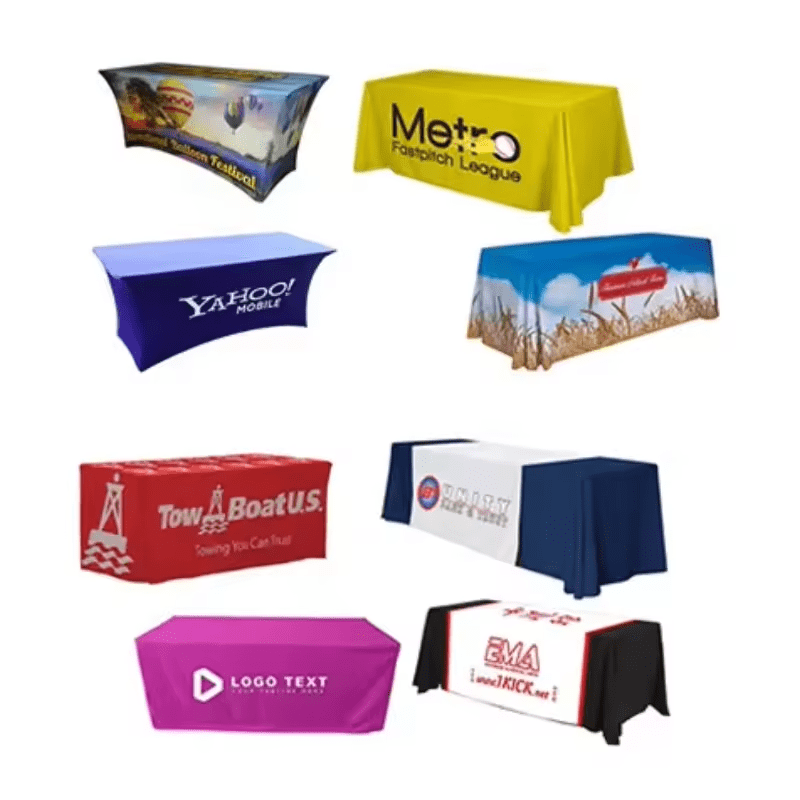 Logotipo personalizado Equipado Cobertura De Mesa 4ft 6ft 8ft Toalha De Mesa Hotel Banquete Exposição Decoração Trade Show Toalha De Mesa