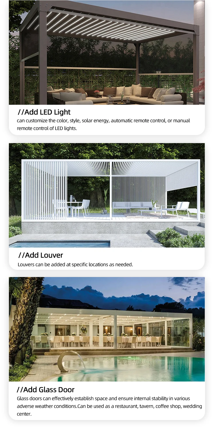 (Esta pérgula é muito mais forte que poderia ser montada com tela suspensa/parede de persiana/parede de vidro)