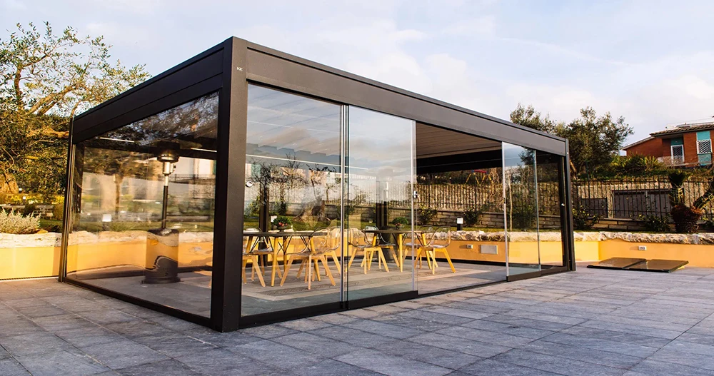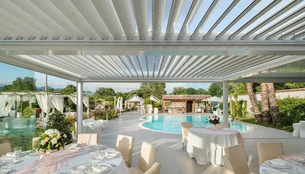 Pergola Bioclimática de Alumínio Motorizada Retrátil Elétrica Impermeável com Revestimento em PVC para Jardim – Hot Sale